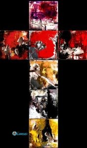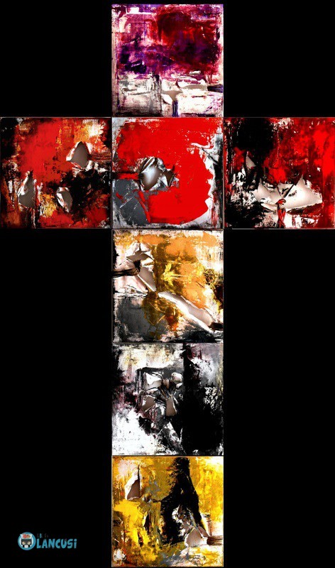 I sette peccati ditottiani è un’opera imponente, 200 cm x 120 cm. Composta da ben 7 tele. In esse possiamo ritrovare i 7 peccati capitali che uniti formano la famosa Croce di Ditot.