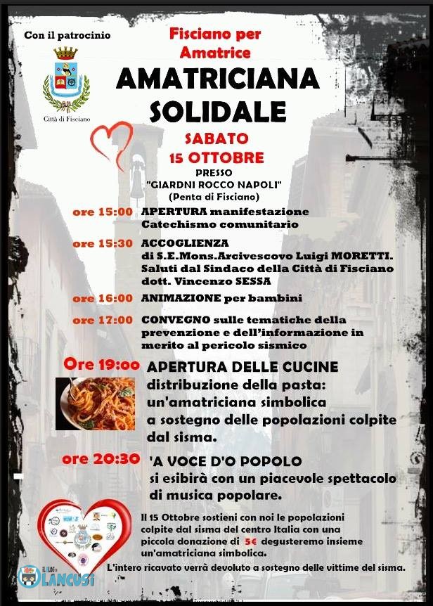 amatriciana solidale Pubblicato il 11 Ottobre 2016 Navigazione articoli « Amatriciana solidale @ Penta di Fisciano