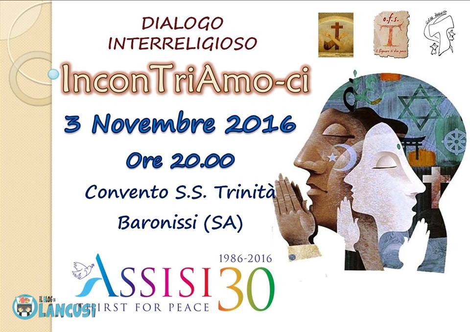 evento-chiesa-baronissiIn occasione dei 30 anni dallo Spirito di Assisi,la famiglia francescana vi invita al dialogo con la religione protestante.Durante la serata ascolteremo la testimonianza del pastore dott Antonio Gaito. Sarà un occasione unica per confrontarci con una realtà diversa dalla nostra e sperimentare la bellezza del dialogo e del confronto.